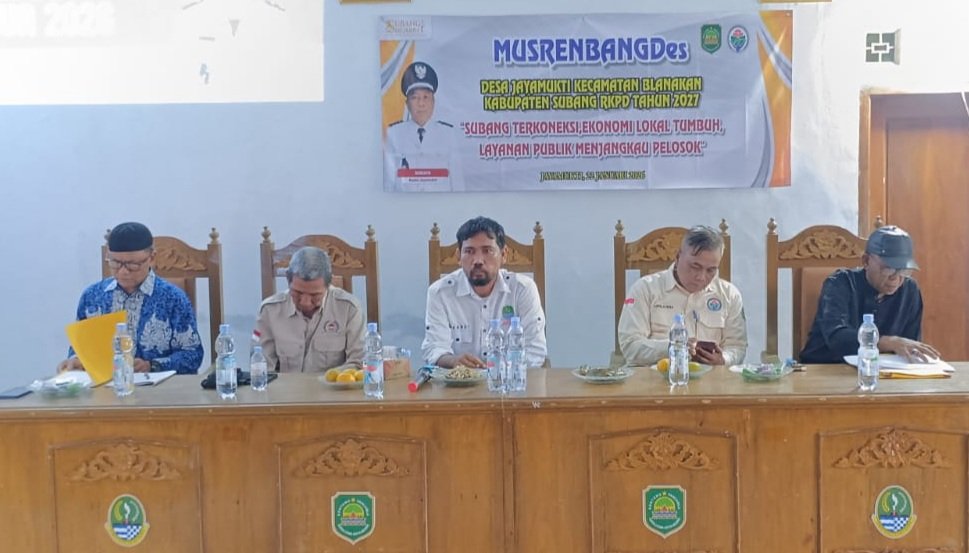 Musrenbangdes tersebut dihadiri oleh Kepala Desa Jayamukti, Sekretaris Desa Jayamukti, perwakilan Kecamatan Blanakan, Ketua Badan Permusyawaratan Desa (BPD) Jayamukti, serta Ketua Lembaga Pemberdayaan Masyarakat (LPM) Desa Jayamukti.