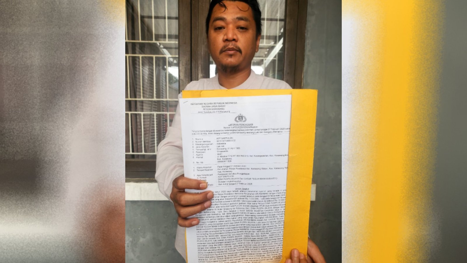 Aep mengaku menjadi korban dugaan penipuan terkait janji pembangunan Perumahan Arrahman sejak 2020. Ia menyebut telah menandatangani Perjanjian Pengikatan Jual Beli (PPJB) dengan Dina Puspa Wijaya selaku pihak penjual, sekaligus istri Catur Teguh Imam Sugiarto, serta telah menyetorkan uang muka pembelian rumah.