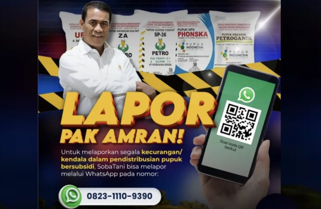 SUBANGPOST.COM – Menteri Pertanian RI Andi Amran Sulaiman meluncurkan kanal aduan masyarakat bernama “Lapor Pak Amran” melalui layanan WhatsApp di nomor 0823-1110-9690. Layanan ini dibuka sebagai sarana bagi masyarakat, khususnya petani, untuk melaporkan berbagai penyimpangan di sektor pertanian.