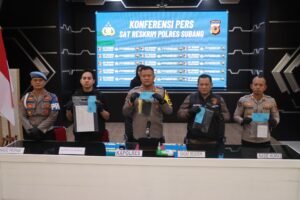 Konferensi pers dipimpin langsung oleh Kapolres Subang AKBP Dony Eko Wicaksono, S.H., S.I.K., M.H., Ph.D., didampingi Kasat Reskrim Polres Subang, Kasi Humas, Kasi Propam, Kanit Jatanras, serta personel Sat Reskrim Polres Subang.