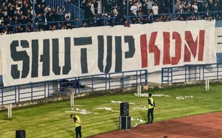 Spanduk yang dibentangkan bobotoh saat laga kontra Arema FC, Jumat (24/4/2026), viral di media sosial dan memicu beragam respons publik.